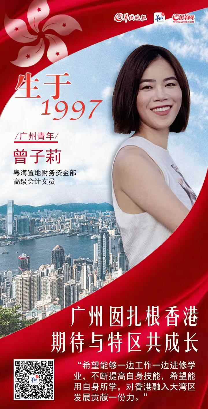 今年是香港回归25周年,也是她在香港度过的第五年,“回归宝宝”变成了“回归青年”,曾子莉的人生也步入新的阶段。刚毕业不久的她,选择留在香港工作,现是粤海置地财务资金部高级会计文员,期待与特区共成长。