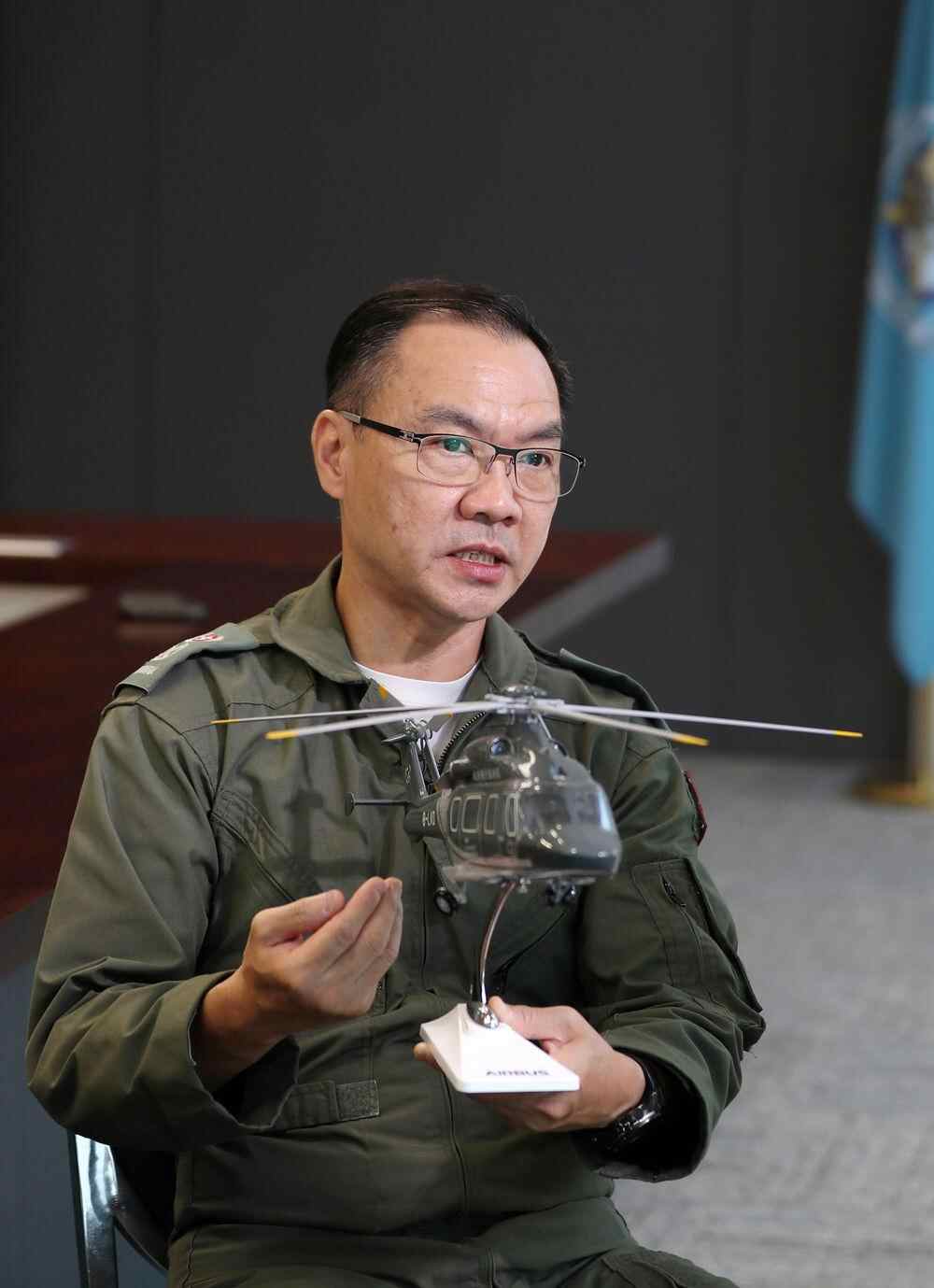 香港特区政府飞行服务队总监胡伟雄接受记者采访(6月20日摄)。新华社记者 李钢 摄