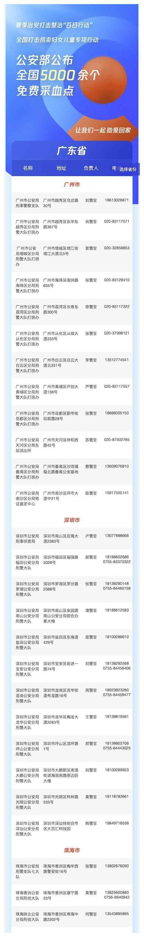 扩散!公安部公布5000余个免费采血点,广东300余个采血点详情→