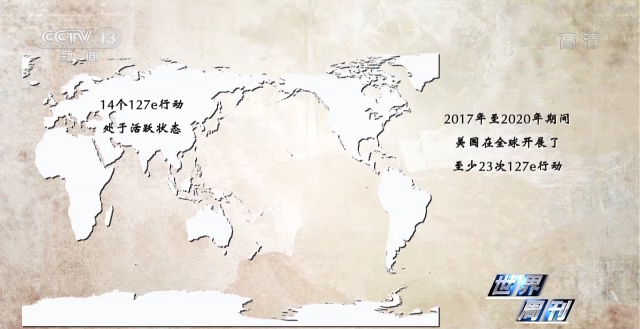 2017年至2020年期间,美国在全球开展了至少23次127e行动,仅在2020年一年,大中东和亚太地区就有至少有14个127e行动处于活跃状态。