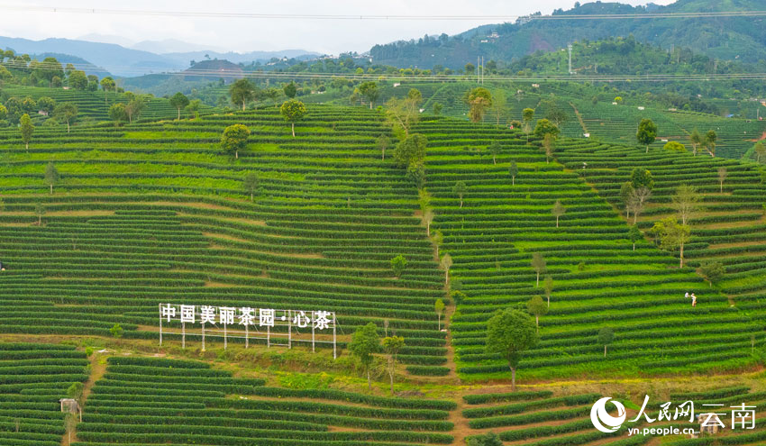 站在百里普洱茶道观景台上眺望,漫山茶园尽收眼底。人民网 王星摄