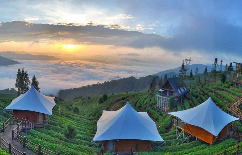 用这句话形容普洱倚象山营地暨半山酒店的景色最贴切不过。这里茶园连绵,重峦叠翠,酒店就建在茶山上,游客吃住就在茶园里。