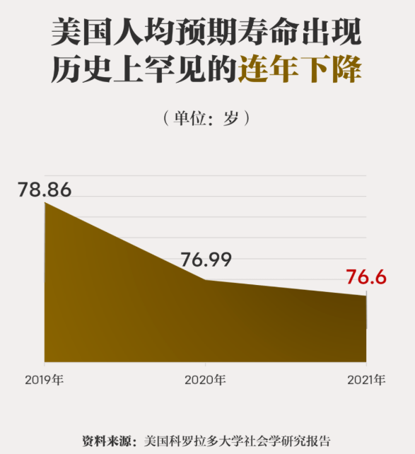 近几年,美国人均预期寿命连年下降。 (资料来源 | 美国科罗拉多大学社会学研究报告)