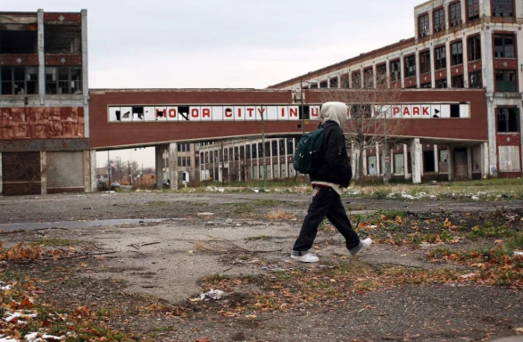 “汽车之城”底特律繁荣的制造业曾经支撑起二十世纪美国的经济,但如今大量工厂关停,沦为“铁锈带”城市。