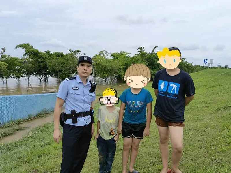 近日,佛山顺德区公安局均安派出所民警在南沙围堤巡逻,行至南沙甜竹林湿地公园时,发现3名小朋友正在被洪水浸没的公园一角野泳,且附近未发现有成年人看管。