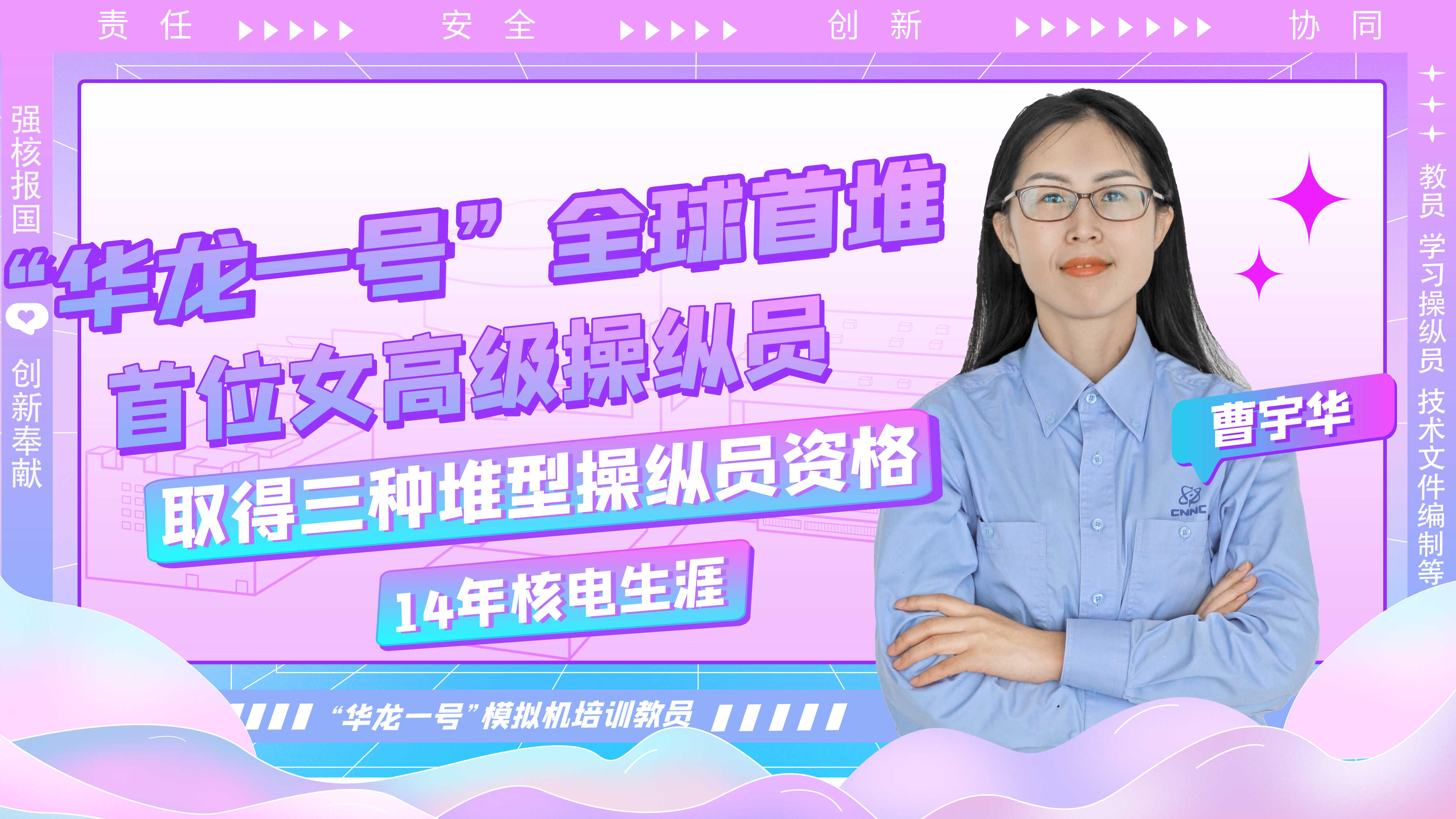 福清核电华龙一号操纵人员模拟机培训教员曹宇华,曾在调试工程师、设计文件审查人、运行准备工程师、首批操纵员多个岗位参与华龙一号建设。她说,2022年3月25日华龙一号示范工程全面建成投运那天,每一个参与华龙一号建设的你、我、他,都感到由衷的欣慰与自豪。