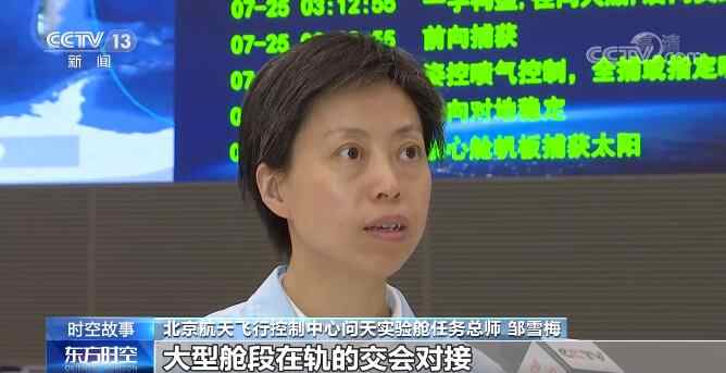 北京航天飞行控制中心问天实验舱任务总师 邹雪梅:这是我们首次实施大型舱段在轨的交会对接,总的来说整个交会对接过程控制非常精准,完成得很圆满。
