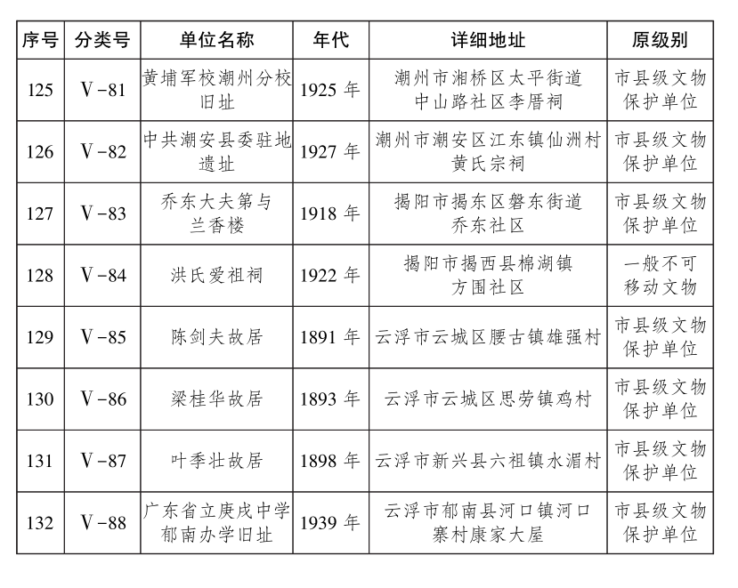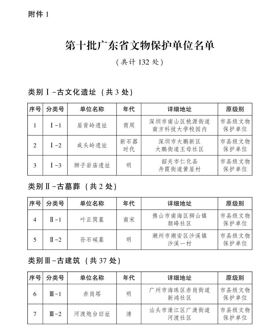 7月28日,广东省人民政府官方网站公布了屋背岭遗址等132处不可移动文物被列为第十批广东省文物保护单位,还有3处与现有广东省文物保护单位合并的不可移动文物。