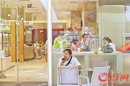 佛山岭南天地的奶茶店内,年轻人正在喝奶茶