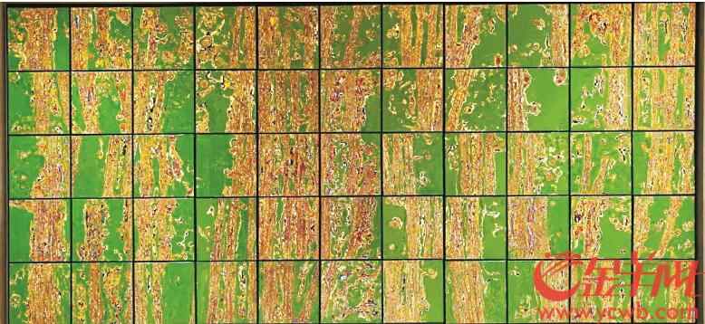 前者表现一片翠绿色的树肌理,抽象生动刻画祖国大地生机勃勃,四季如春;后者延续《春华》的繁华与生机,以红色为主调,色彩饱和度更高,寄寓着新时代的红红火火。