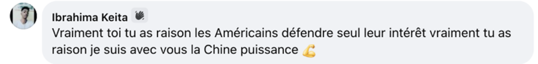 刚果(金)网友表示:“感谢主播的阐释。我们一起努力创造没有战争的更好的世界。我生活在刚果(金)的战区,我深刻感受到战争是多么可怕。因为这些冲突,我们已经失去了很多生命。”