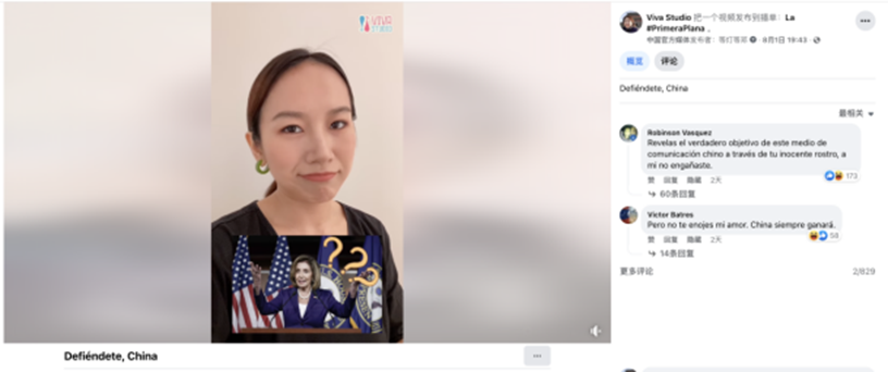 佩洛西窜访事件发生后,一方面大量网友与主播们一起谴责佩洛西的恶劣行径,另一方面也有部分网友表示个人疑惑与观点,如“不明白为何中国反应如此强烈”“中国回应措施不够强硬”等。面对网友疑问,网红主播们结合自身人设,循循善诱,表明中国维护和平决心。其中阿拉伯语网红主播在个人脸书、优兔平台发布短视频《中国是懦夫?有关佩洛西窜访中国台湾地区一事我的看法》,从普通中国国民的角度向阿拉伯网民澄清事实。