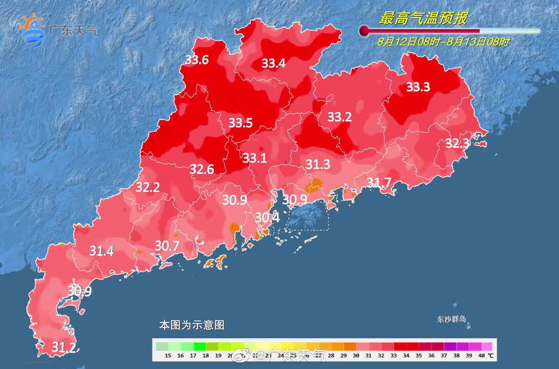12日,粤西和珠江三角洲南部市县有中到大雨局部暴雨,其余市县多云间阴天,有(雷)阵雨局部大雨。最高气温:粤西和珠江三角洲南部市县29℃~31℃,其余大部分市县31℃~34℃。