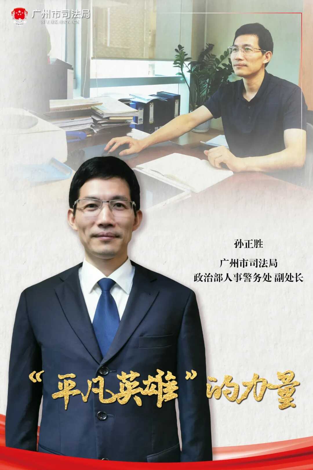 孙正胜,现任广州市司法局政治部人事警务处副处长,2022年1月被评为“第八届广州市人民满意政法干警”。