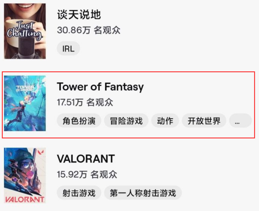在外围热度方面,《幻塔》海外版在推特、Twitch直播平台热度持续升温,登上多国推特热搜趋势榜。上线当日,在Twitch直播平台上有超过17万人观看直播,在游戏产品直播领域位居头部。