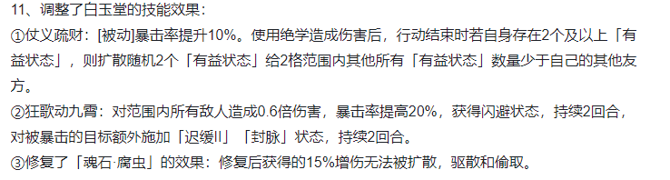 《天地劫:幽城再临》官方调整白玉堂技能公告