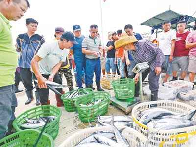 赶早市“抢头鲜” 开渔后阳江市闸坡港码头首批渔船满载而归
