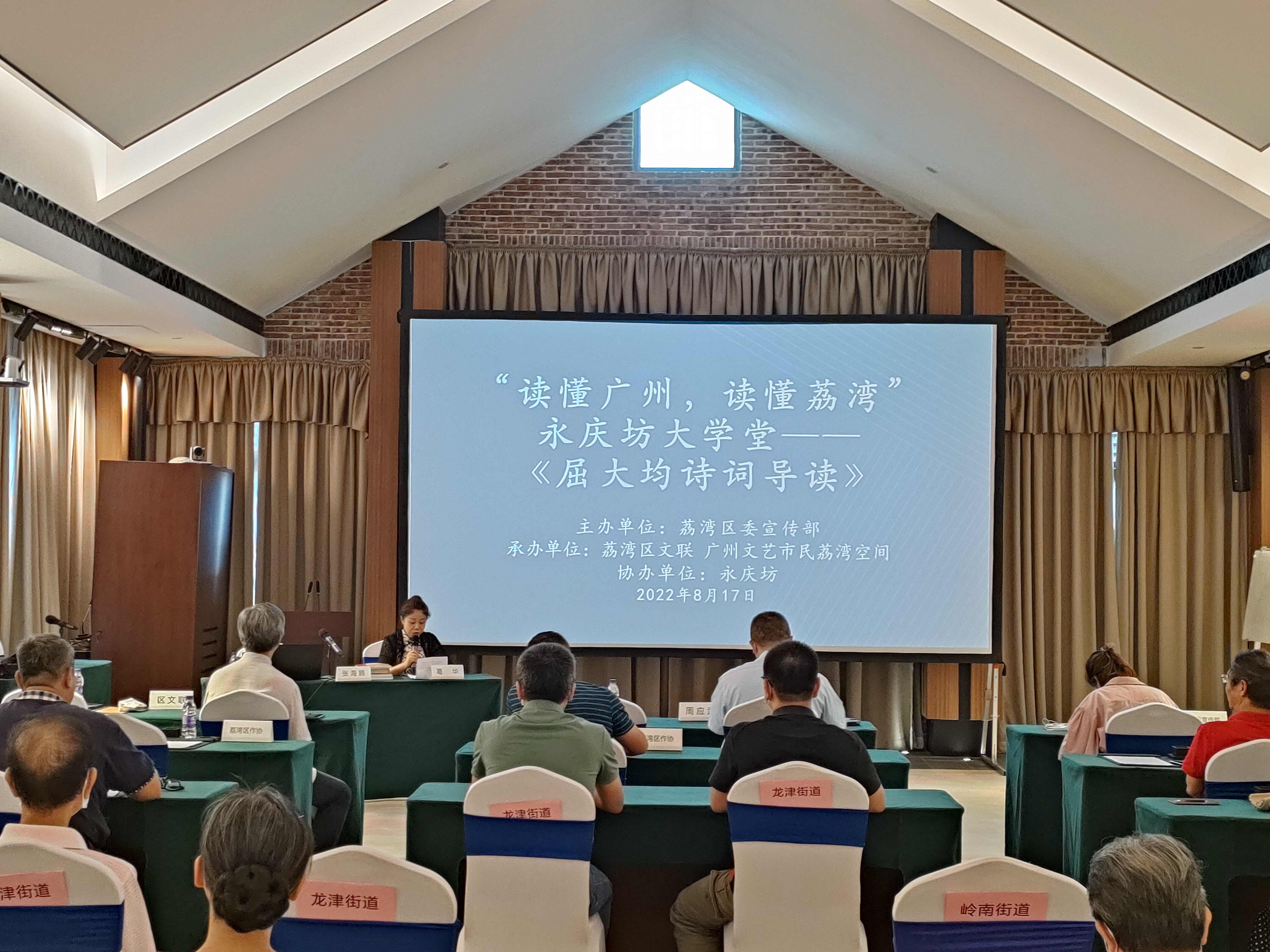 这次活动由荔湾区委宣传部主办,荔湾区文联、广州文艺市民荔湾空间承办,永庆坊协办。荔湾区委宣传部、区文联领导,区作协、荔苑诗社嘉宾和龙津街道、岭南街道、华林街道党员群众参加活动并聆听了讲座。