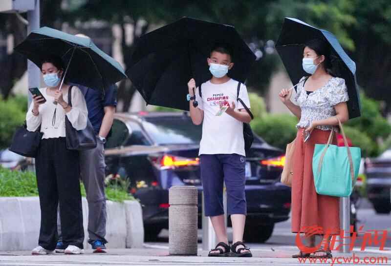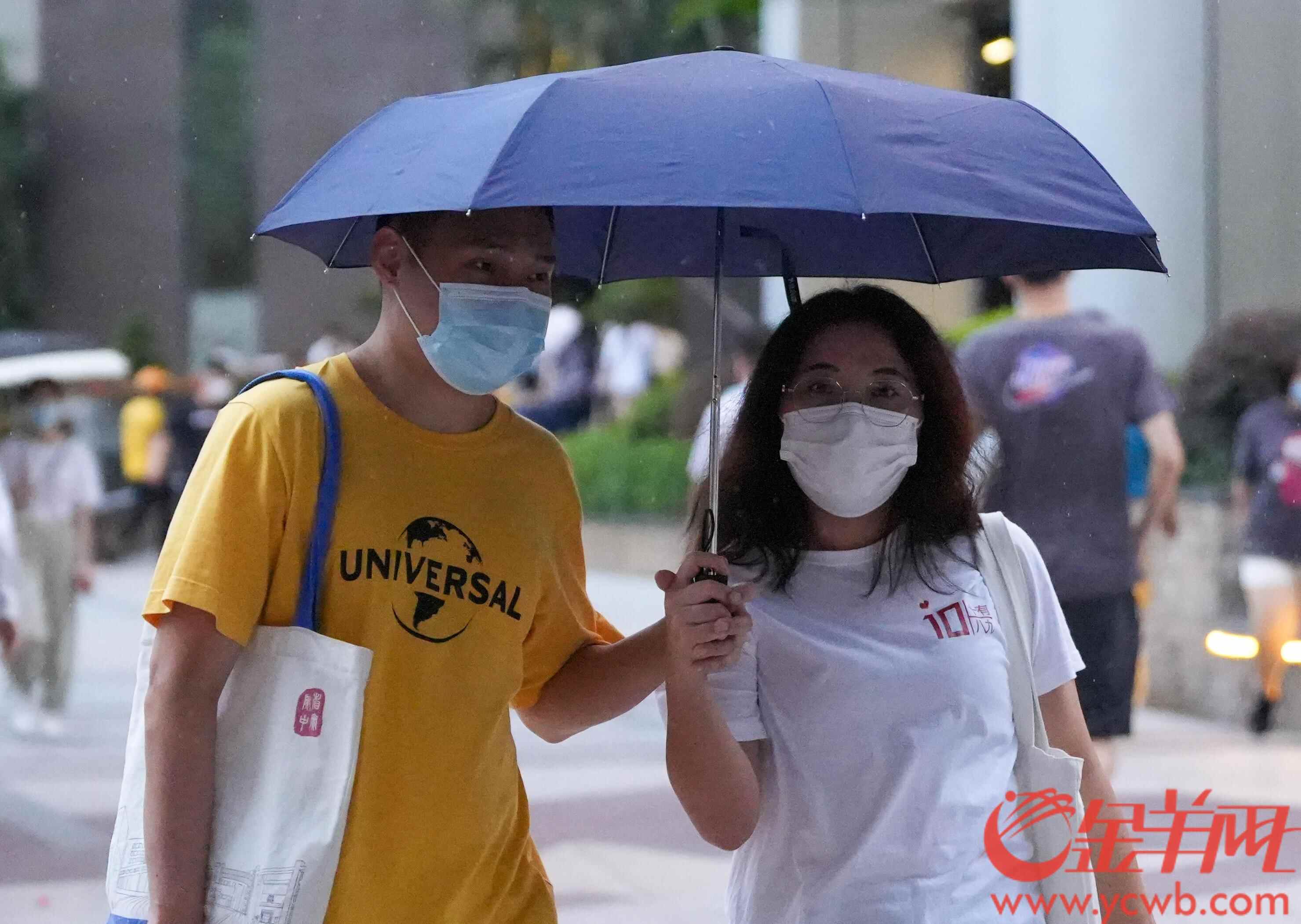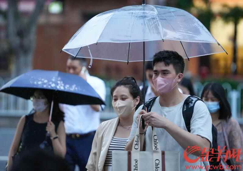 8月19日傍晚,飘起小雨的广州,部分市民撑伞出行 梁怿韬 摄