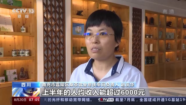 四川省南充市嘉陵区桑茶帮扶车间负责人 赵庆华:通过政府扶持,我们的帮扶车间渡过了难关,我们(帮扶)车间吸纳的80多名脱贫人口,上半年的人均收入能超过6000元。