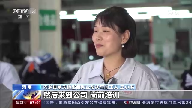 河南省内乡县就业帮扶车间员工 王小洪:之前啥都不会,然后来到公司岗前培训,每天补助60块钱生活费,一个月稳定收入能拿3000多块钱。