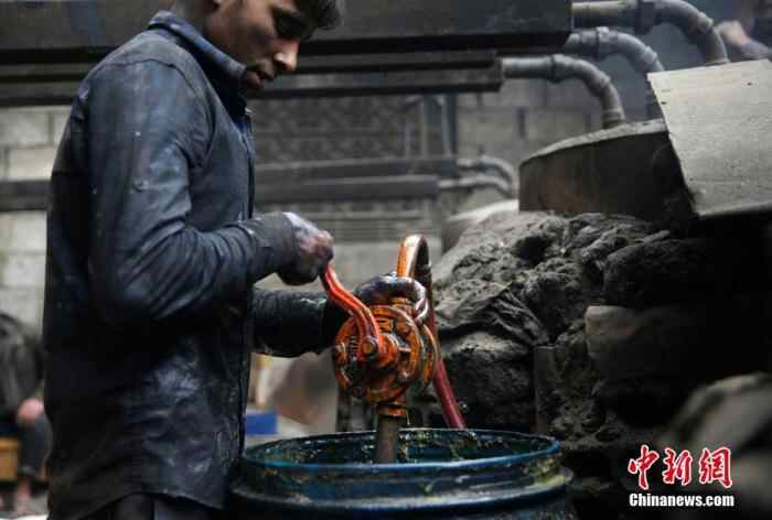 资料图:叙利亚工人自建炼油厂,应对燃料短缺。从废弃塑料中提取燃料的程序很危险,操作者需十分谨慎。