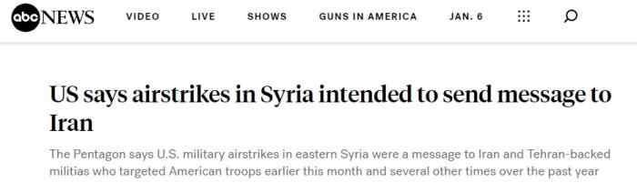 美国称空袭叙利亚是为对伊朗发出信息。图片来源:美国广播公司报道截图