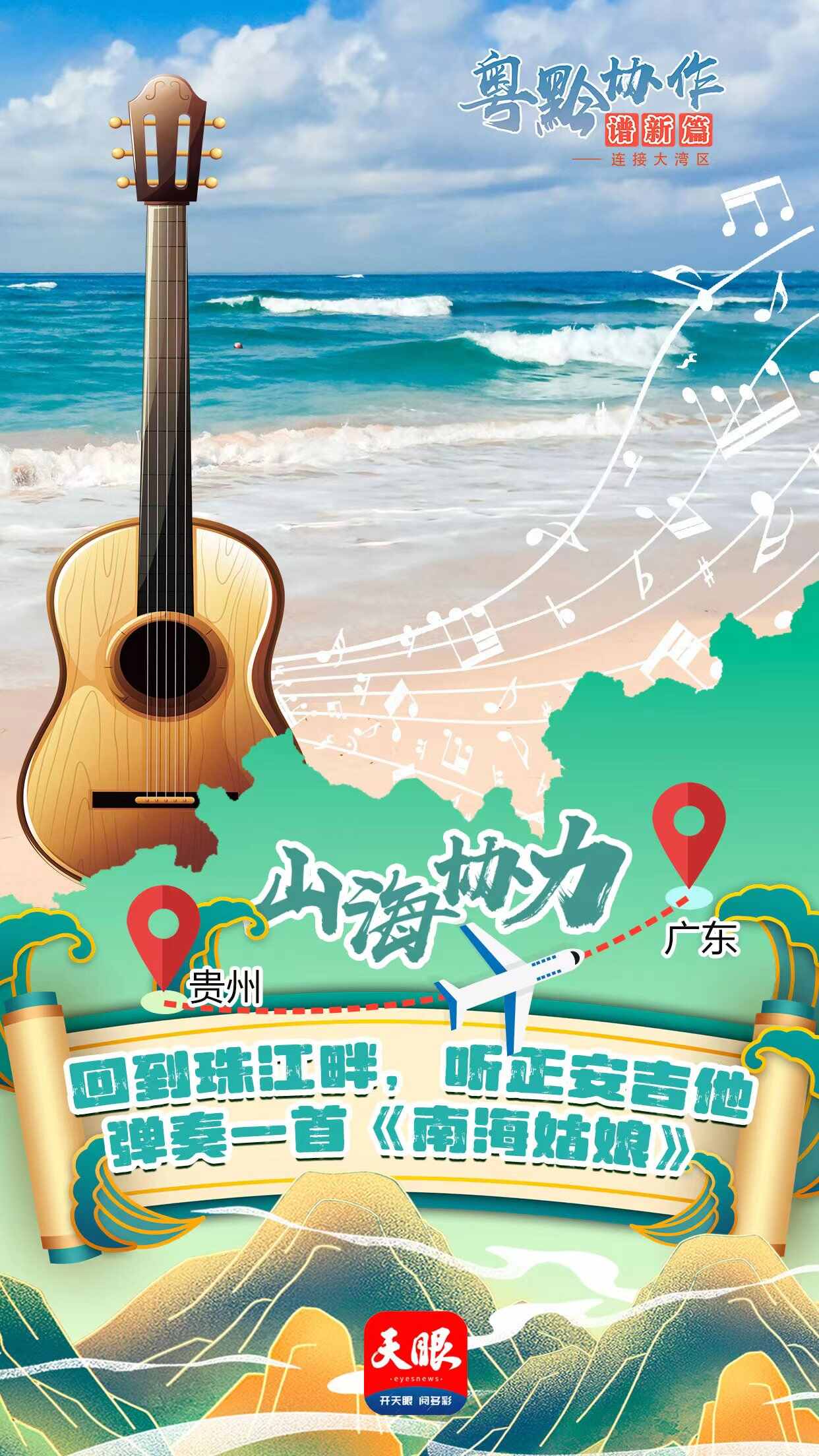 面对大海轻轻拨动吉他的琴弦,相伴的海浪声成了这首悠扬乐曲的协奏。沙滩与吉他,就是天然的CP组合,而广东沙滩与贵州吉他,更是绝妙的好搭档。贵州日报天眼新闻融媒体报道小组走进粤港澳大湾区,在广东珠海横琴口岸,弹奏一曲《南海姑娘》。