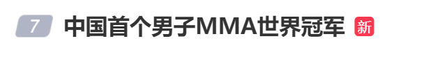 当晚,#中国首个男子MMA世界冠军#冲上微博热搜。