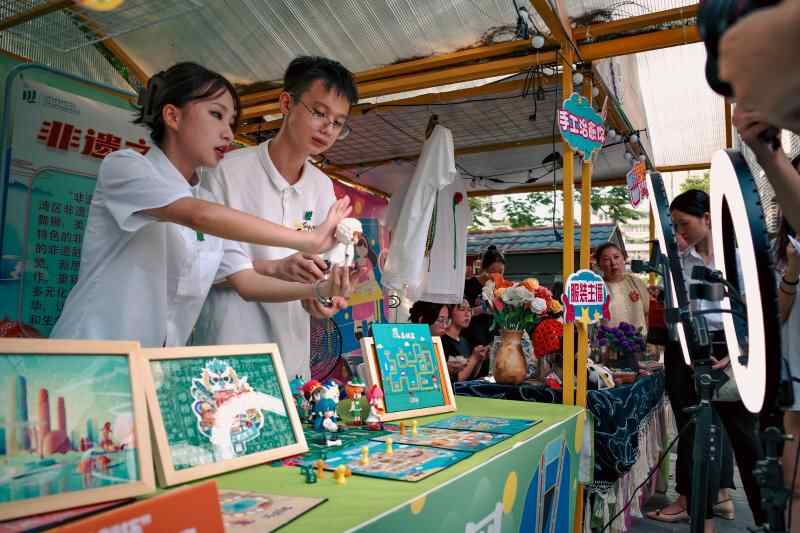 新职业体验感满分 戴上VR眼镜,即刻领取元宇宙体验卡;巧手一捏,小面团也可化身娇俏的玫瑰花,还能佩戴由3D技术打印而成的活动主题穿戴美甲……在永庆坊的街巷中穿梭,来自新技能、新职业的特色专业摊位琳琅满目,体验感互动感直线提升!