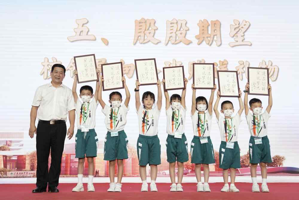 接过省实云城校区小学部的重任,柯中明将“五育并举”细化成可评、可测的标准,这里的孩子要做到“九个一”:一颗爱国心,一副好身体,一张好笑脸,一双亮眼睛,一群好朋友,一项乐活动,一堆课外书,一股创新劲,一手好书法。何谓德智体美劳,在这里看得到、摸得着。