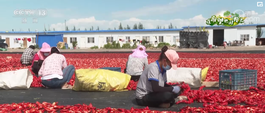 新疆巴州:戈壁滩上晾辣椒 “红色拼图”晒丰收