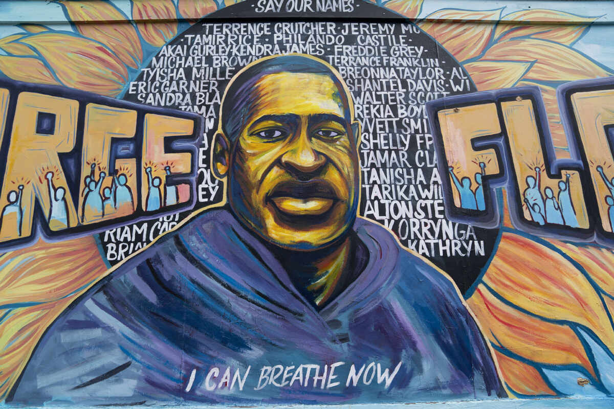 这是5月22日在美国明尼苏达州明尼阿波利斯市拍摄的弗洛伊德广场上的纪念画。图片来源:新华社