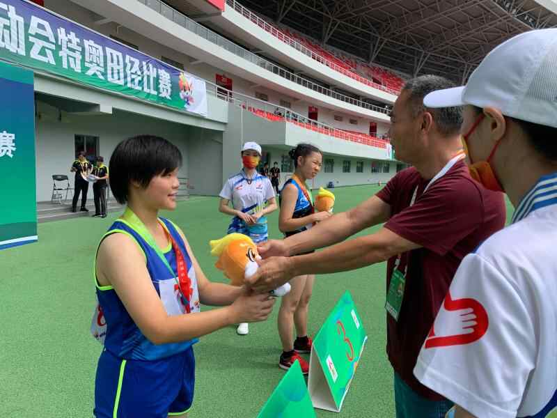 除了紧张激烈的高考考场,福利院的孩子还走上了火热比拼的竞技赛场。7月8日,在广东省第九届残疾人运动会上,来自江门市儿童福利院的儿童江雪晶夺得了铅球组和跳远组两枚金牌。
