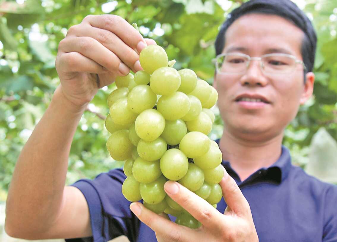 羊城晚报讯 记者张文,通讯员黄振生、林晏伟、刘海军摄影报道:记者9月8日获悉,中秋前夕,英德市连樟村省级农业产业园推出的农产品中,多了一款新产品——香印青提(又称阳光玫瑰葡萄),这是该产业园首度试种成功推出的农产品。