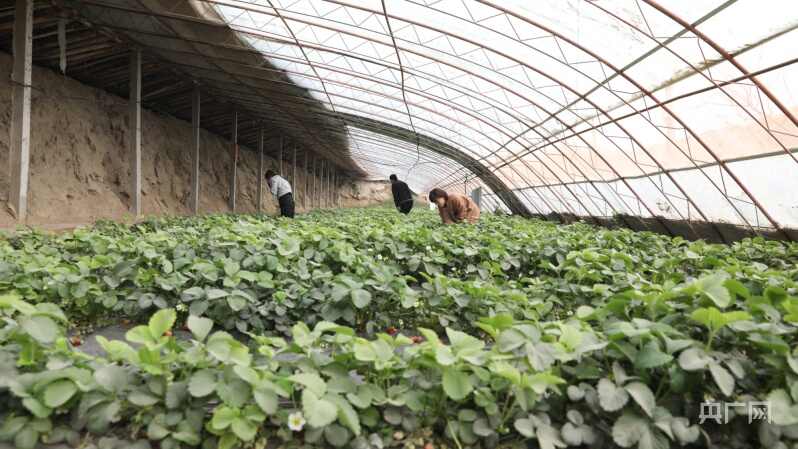 游客正在大棚里采摘草莓(央广网发 米尔妮萨·阿卜杜拉 摄)
