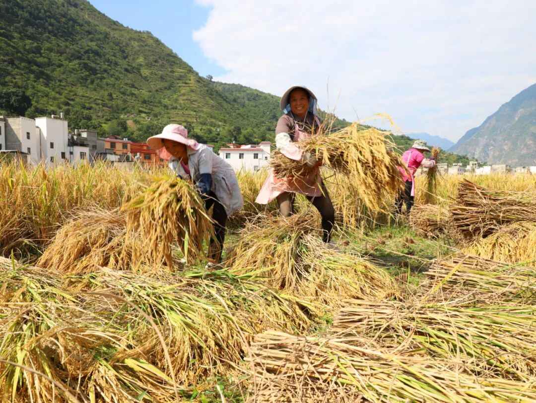 巧家县老街社区种植的水稻品种为宜香725,由于该地海拔、气候、土壤等自然条件优渥,以往年份亩产均在850公斤以上,今年受气候影响略有减产,预计亩产量在800公斤左右。收获的稻谷加工成大米后,除了留下自家吃的外,稻农们还会进行出售,每公斤价格在6元左右。