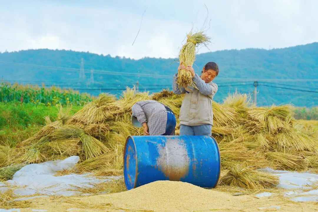 正在自家院坝晾晒稻谷的罗清麦笑着说:“我家的稻谷都打完了,要趁这几天气候好,把它晾晒干,留点下来吃,其它的都卖掉。”