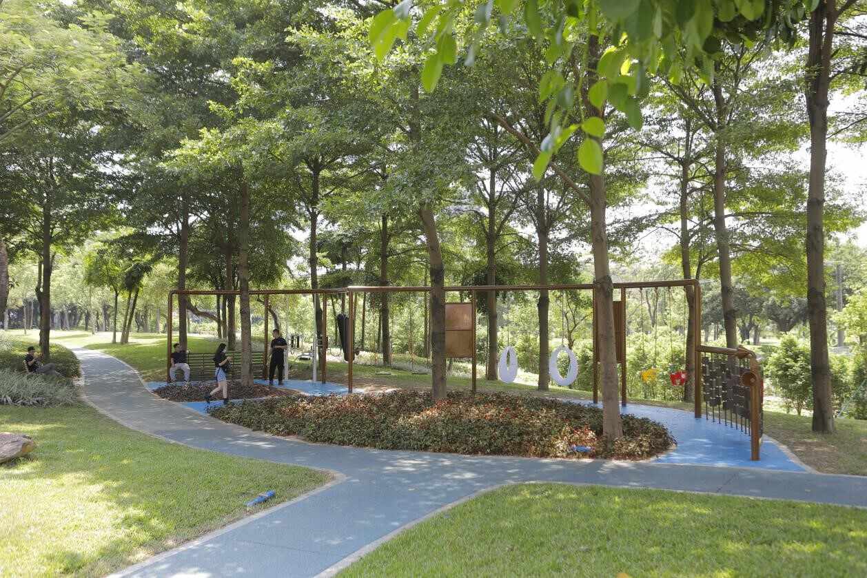 据介绍,鱼珠智谷口袋公园位于黄埔区鱼珠街道茅岗南路西侧,面积约1.5万平方米。改造前,植物层次单调,色彩不突出,缺乏休闲、健身设施,群众参与度较低,属于典型的街头闲置绿地。与此同时,该区域聚公交站、地铁站,周边存有居住区和自然村落,人流量大,且绿地附近无集中休闲、运动健身区域,与人民群众健身需求和生态需求具有一定差距。