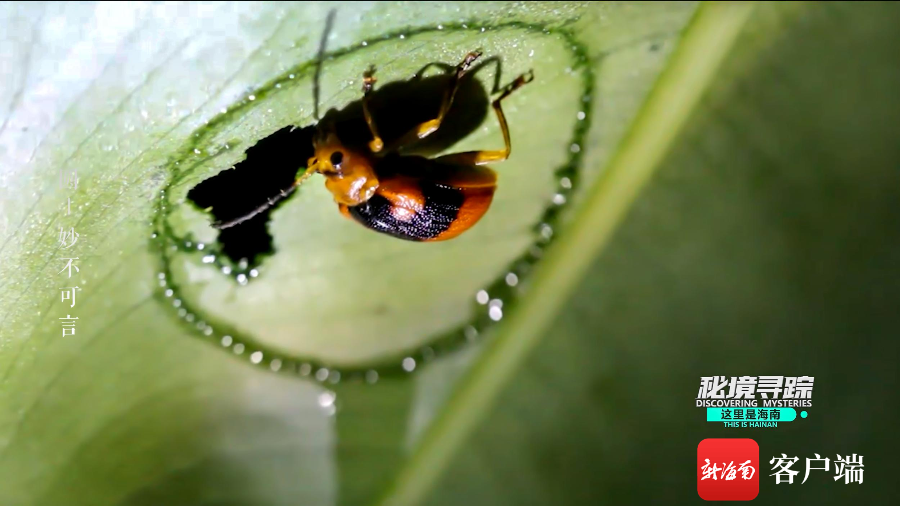 新海南客户端、南海网、南国都市报9月25日消息(记者 谭琦)海芋的叶片背面,不知不觉留下了一圈浅浅的划痕,这是昆虫“画家”锚阿波萤叶甲画的圆圈,也是它特有的开餐仪式——“画饼充饥”。这个饼并不是空想,而是真正用来吃的。