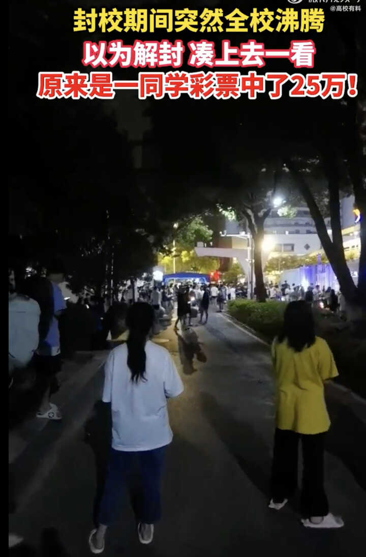 记者了解到,视频里同学们起初在校内奔走的情形与中奖无关,是以为学校西门开放、恢复了常态化管理,可以自由进出后的场景。