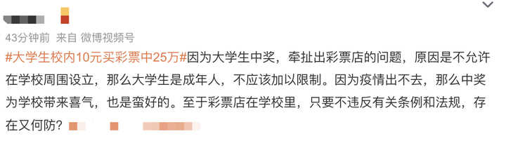 有部分网友对大学里开彩票站表示质疑,毕竟大学生没有收入,万一沉迷于此不太好。