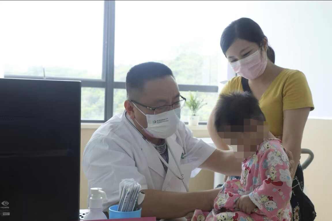 当天下午,广医三院黄埔院区迎来首位就诊市民,一位宝妈带着孩子来到该院儿科门诊,该院儿科主任医师马廉教授为其免费义诊。