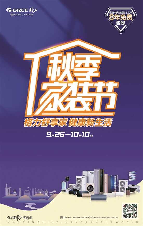 9月26日-10月10日,格力电器开启“2022年秋季家装节”的活动,主题为“格力舒享家,健康新生活”。格力推出多款搭载核心技术的高品质产品,为现代家居提供中央空调系统、中央地暖系统、中央新风系统以及中央净水系统等多种家装解决方案,助力消费升级。