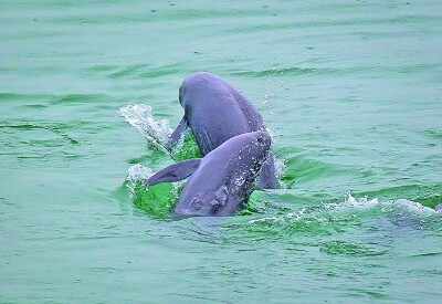 湖北宜昌,长江江豚在水中嬉戏。新华社记者肖艺九摄