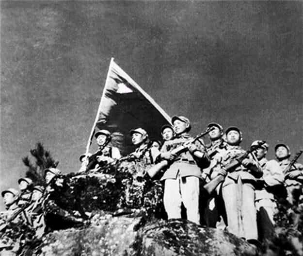 布满381个弹孔的战旗飘扬在上甘岭主峰。来源:《解放军报》