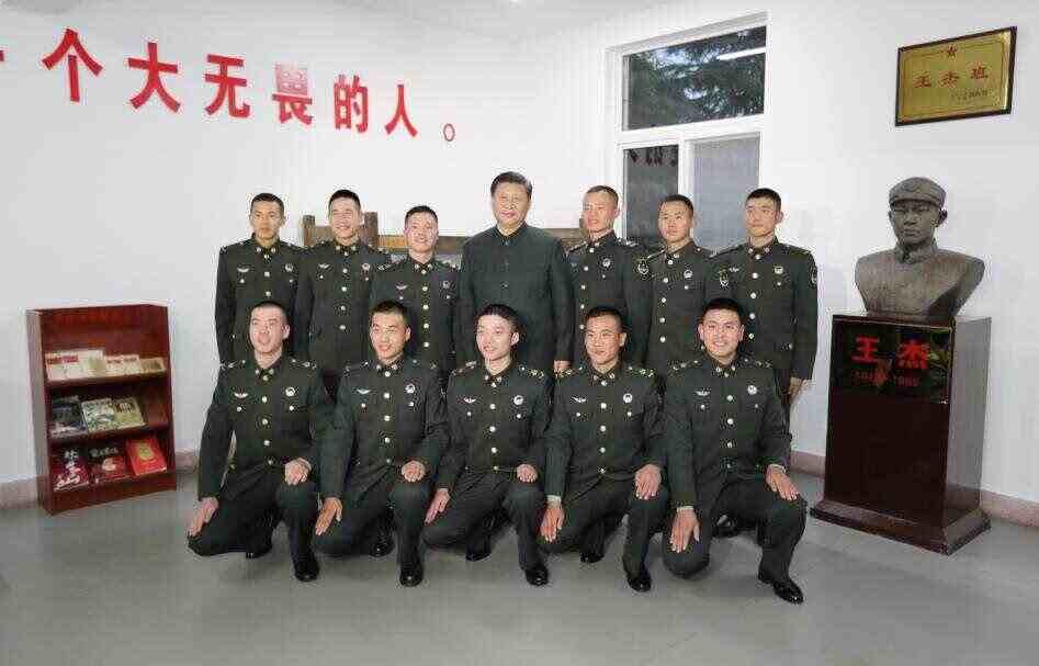 2017年12月13日,中共中央总书记、国家主席、中央军委主席习近平到第71集团军视察。这是习近平同“王杰班”战士合影。新华社记者李刚摄