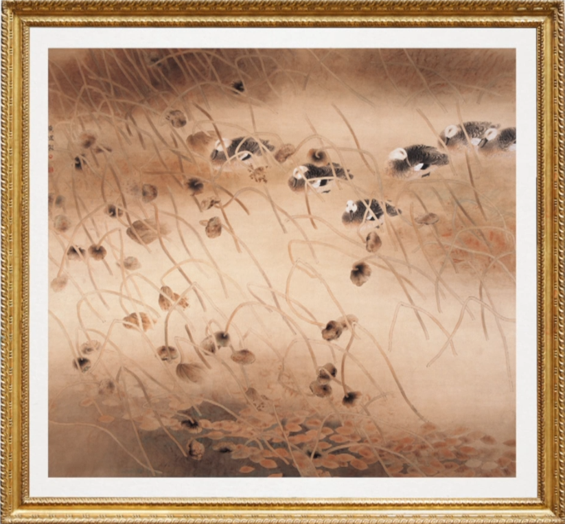 ”诗是有声画,画是无声诗,这个声音是什么?这声音就是一种诗意,一种意境。从构图形式上,我把野鸭放在很高的一个位置上,这正是我在自然里边得到的这种启示。”