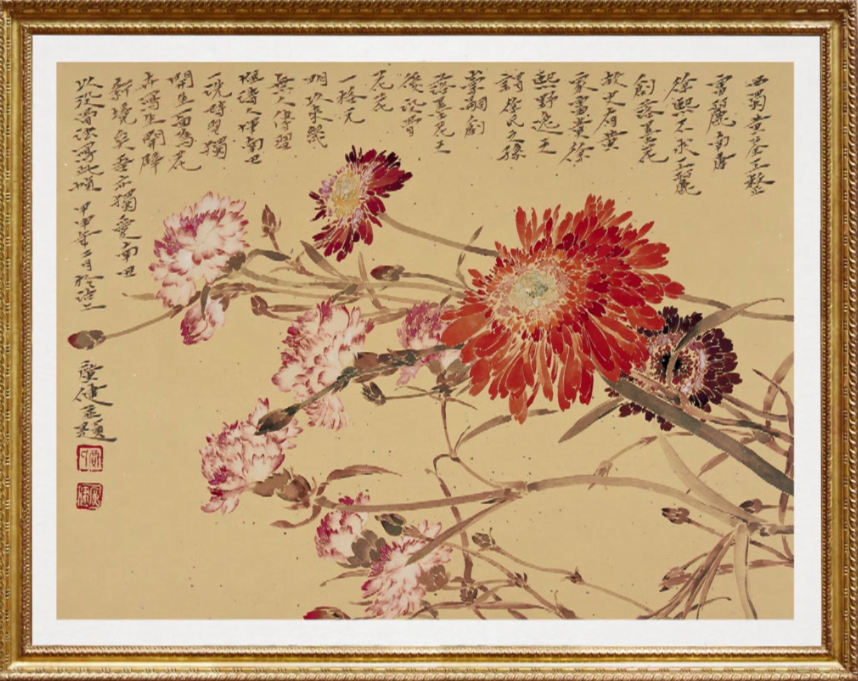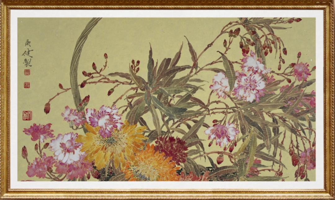于是,他认真研习清代画家恽寿平的没骨画法之精髓。经过多年钻研,他先后创造出没骨画《粉淡香轻》《鸣秋》《盛世繁华》等作品,这些没骨画作品,开创了骨秀内含、雅静舒逸的时代新风。