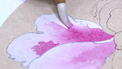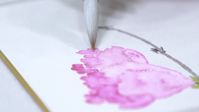 没骨画最重要的是它用没骨点染,一次成形。调色是非常重要的,我画的这一个花瓣,需要它更鲜亮一些,我就少加粉。